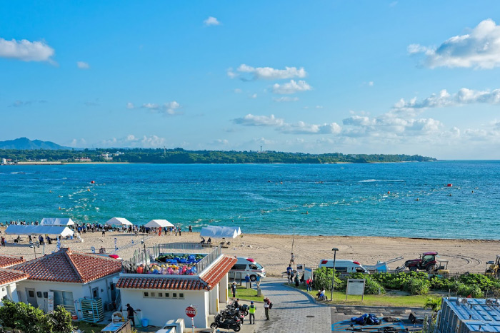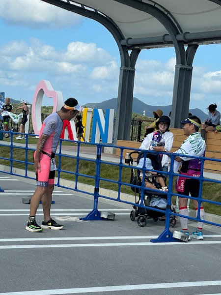 今年は伊藤たけしにとってトライアスロンを満足に楽しむことができないシーズンでした。開幕戦の新島トライアスロンは新島到着後に荒天により中止となりました。その後持病の腰痛が悪化、3カ月ほど全く走れない(ランニングが出来ない)日々が続きました。8月末に震災復興応援も兼ねて参加した「能登島トライアスロン」では、バイクパートで前後のタイヤがパンクするという長いトライアスロン人生で初めての経験をし、なんとかバイクフィニッシュをするもランは腰痛に耐え切れず半分の距離を歩くという始末です。今回のおきなわKINトライアスロンが実質、今シーズン最初で最後のレースとなりました。